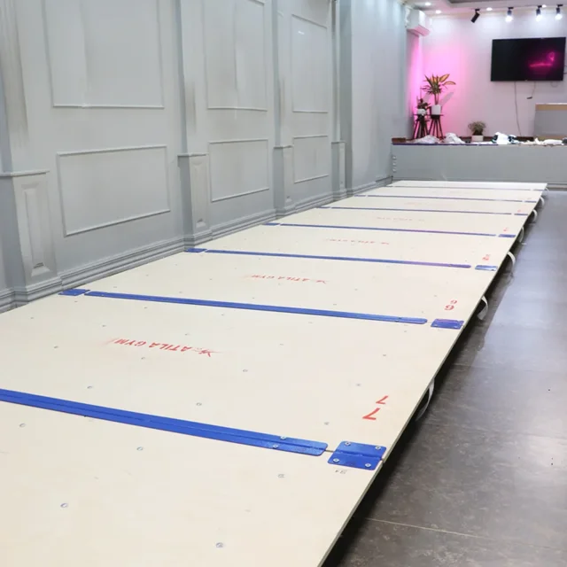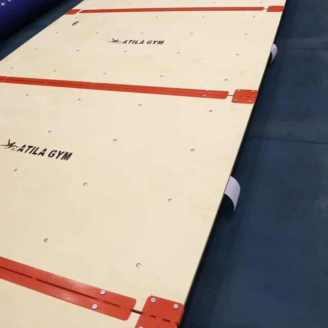 پیست فنری زمینی آتیلا اولین پیست فنری در ایران با قفل نگهدارنده فولادی است که برای اجرای ایمن و اصولی حرکات زمینی طراحی شده است. ساختار از پلیوود روسی ضدآب، فنرهای استوانهای سختکاریشده با بشقاب فلزی و پروفیل H فولادی تشکیل شده که ارتجاعی یکنواخت و ایمنی بالا ایجاد میکند. این پیست با عرض استاندارد ۲ متر و متراژهای سفارشی، انتخابی حرفهای برای سالنهای ژیمناستیک است.
